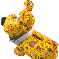 'Cool Camouflage Dino' Diego is perfect for hiding during night games in the jungle. With his big eyes he sees movement in the dark like the best. This sturdy ceramic piggy bank has one of our colourful patterns and fits perfectly in a spicy interior. Also ideal as decoration in the children's room! A large coin slot on the back and a rubber cap at the bottom make sure you can easily reach your money.